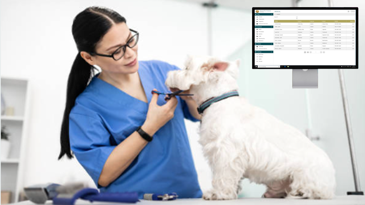Software de cuidado móvil para peluqueros de mascotas en movimiento.